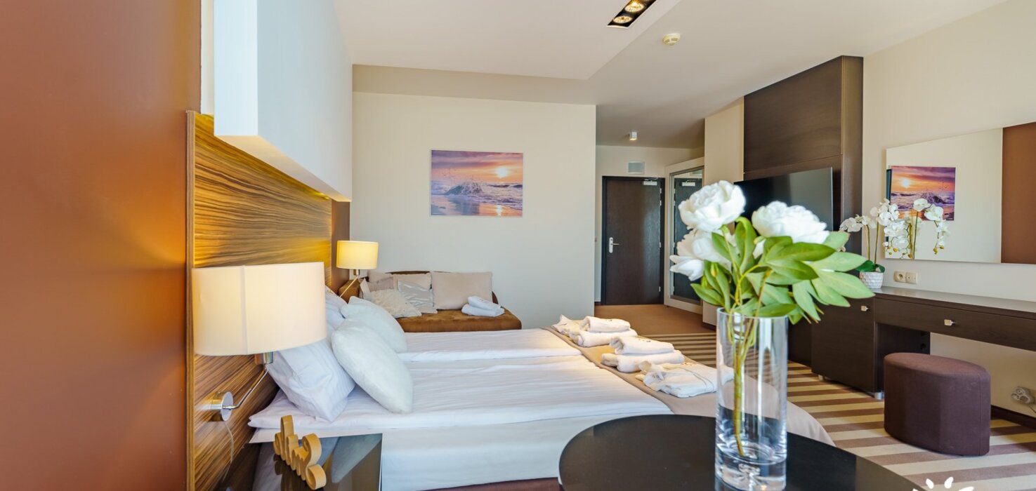 Apartamenty obejmują ponadto łazienkę z suszarką do włosów. Ręczniki, pościel oraz płaszcze kąpielowe są zapewnione. W okresie letnim apartamenty posiadają na wyposażeniu parawany oraz bardzo wygodne leżaki plażowe.